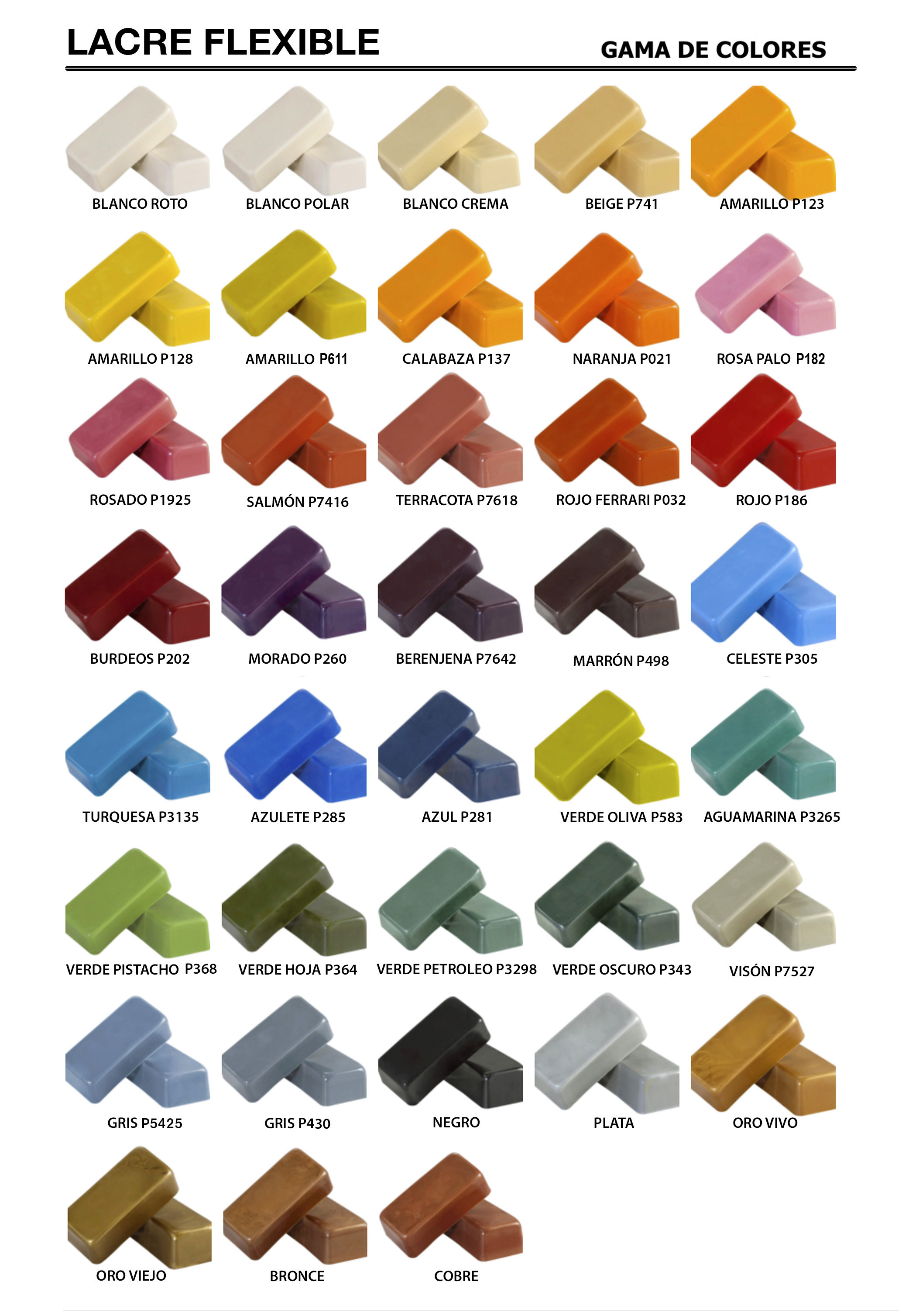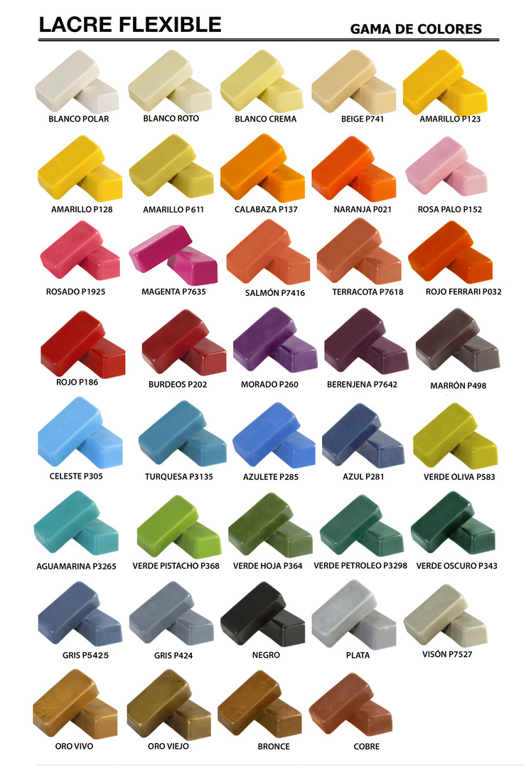 Lacre Extra: tiene carácteristicas similares al clásico pero fabricado por encargo con la densidad y temperatura de trabajo que el cliente solicite. Soporta un amplio rango de temperaturas y solidifica con rapidez. Alta adherencia al cristal, papel y otros materiales, muy resistente, alto brillo, textura fina.